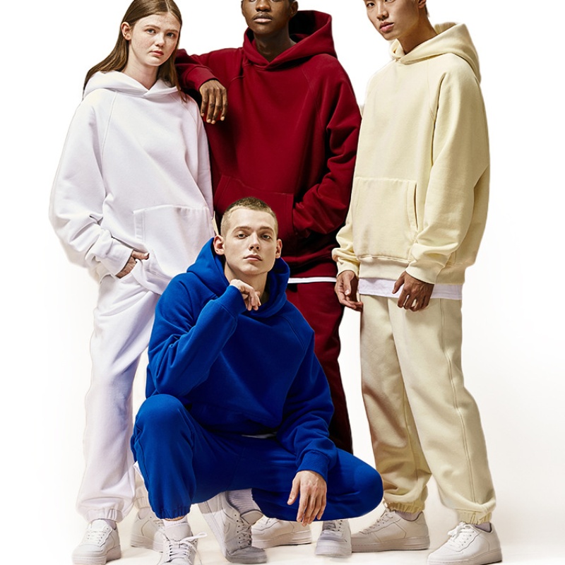 European American Trendy Brand Herren Solid 100% Baumwolle 350g Fleece Kapuzen pullover Langer Herbst Winter Loose Fit Hoodie