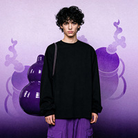 Camiseta informal de manga larga de tela de Otoño de 260g para hombre, ajuste holgado con bordado de calabaza púrpura e impresión Digital
